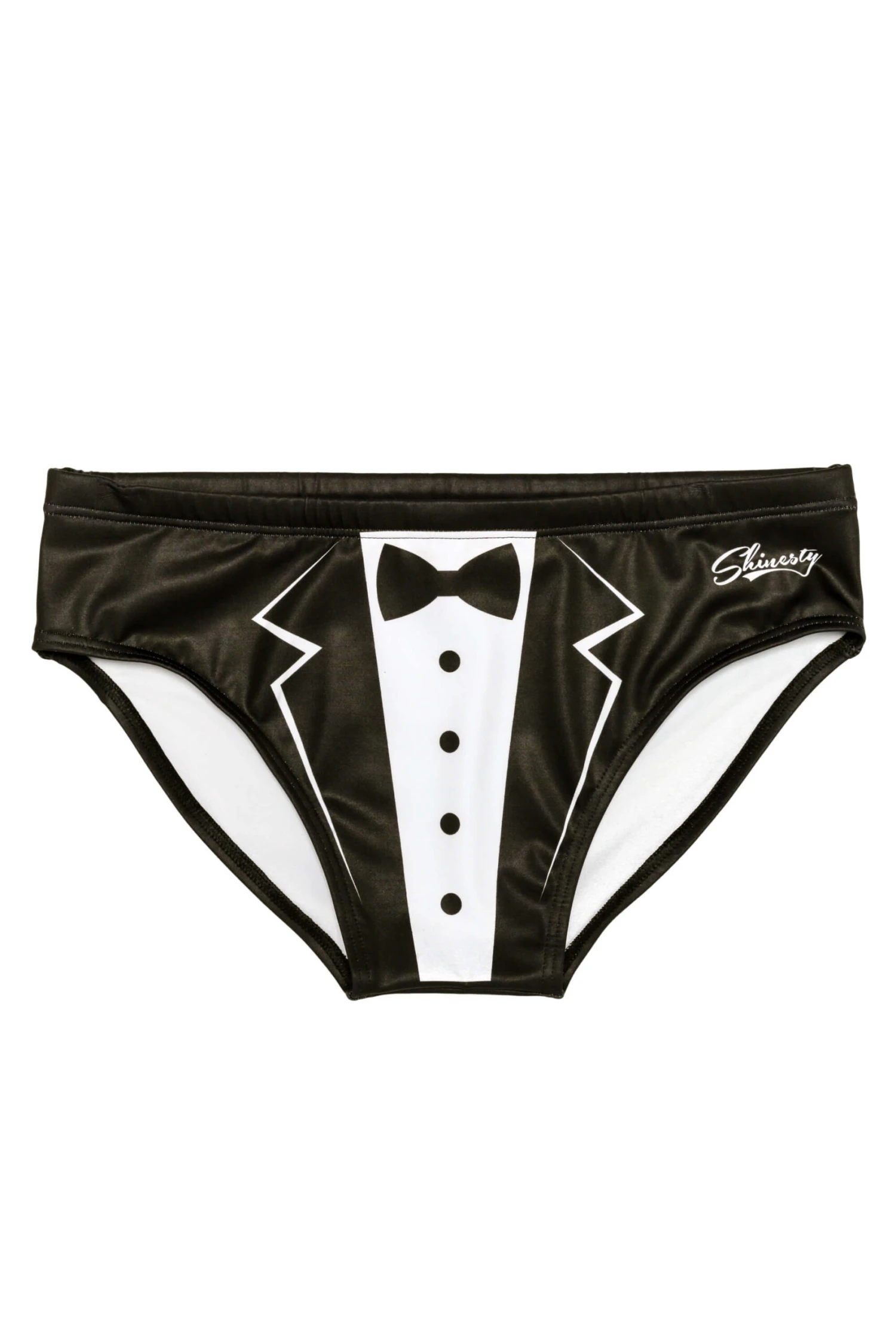 If you’re a pool boy, you have found the holy grail with our tuxedo swim brief. Now Mrs. Peterson has no choice but to give you the mid-thigh elevator eyes while you scrub out the pool that hasn’t been used since ‘Nam. But it doesn’t matter because she can’t wait until 11:30 a.m. on Tuesday mornings, when the thunder from down under shows up for some early morning scrubbin’.