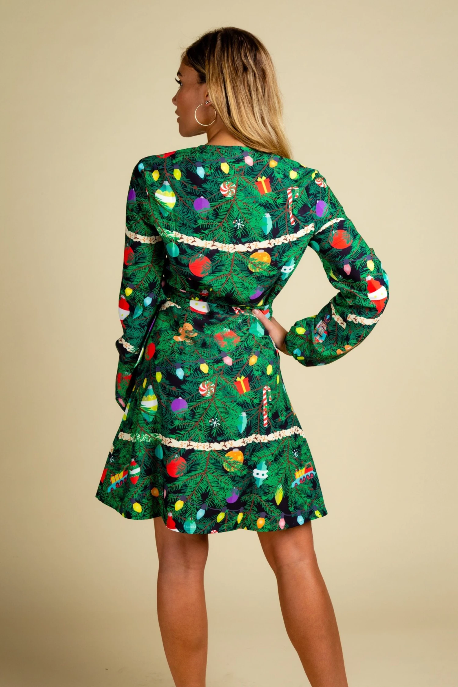 The Christmas Tree Camo | Christmas Tree Print Wrap Dress