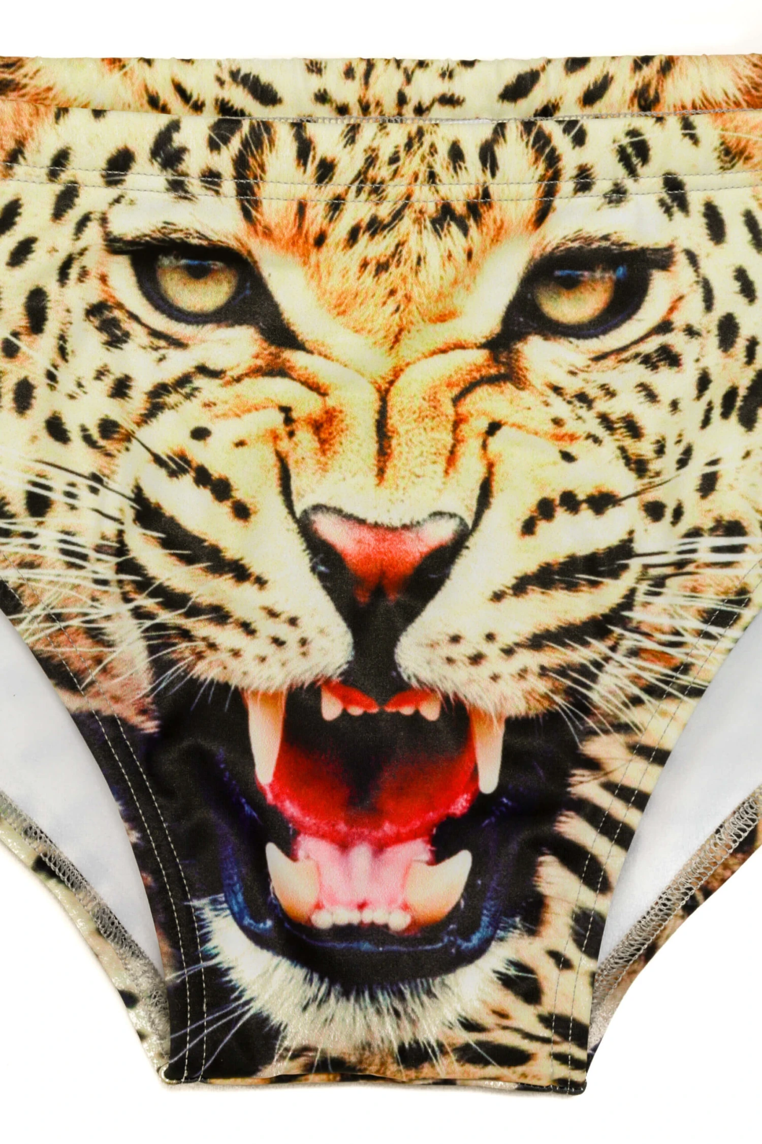 I watch a lot of Planet Earth, and if there is one thing my hero David Attenborough has taught me, it’s that the leopard runs at roughly 42 MPH on a bad day. That said, these leopard print swim briefs won’t make you run faster or jump higher unless you shave your thighs like Michael Phelps. What they will do is shove those stones right back where they belong so you can tell those Euro boys to kiss it, because they ain’t the only ones allowed to crush their nads. If you win a heap of gold medals after blasting the jazz cabbage, however, we’d love to sponsor you and send you an endless supply of swim briefs. Hit us up. Plus, pair this men’s leopard swimsuit with our ladies one-piece for an even more predatorial look.