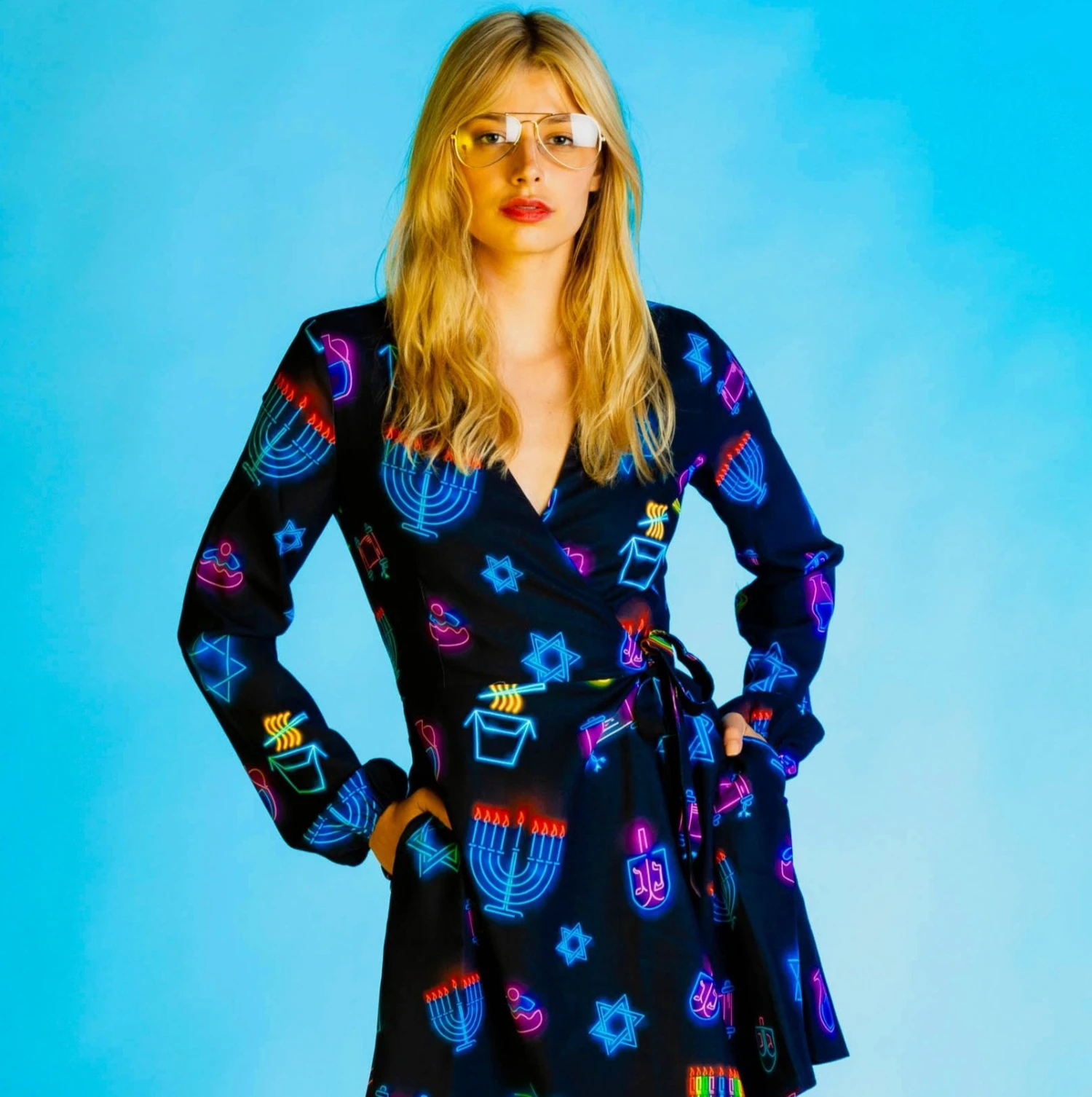 The Latke’d & Loaded | Neon Hanukkah Wrap Dress