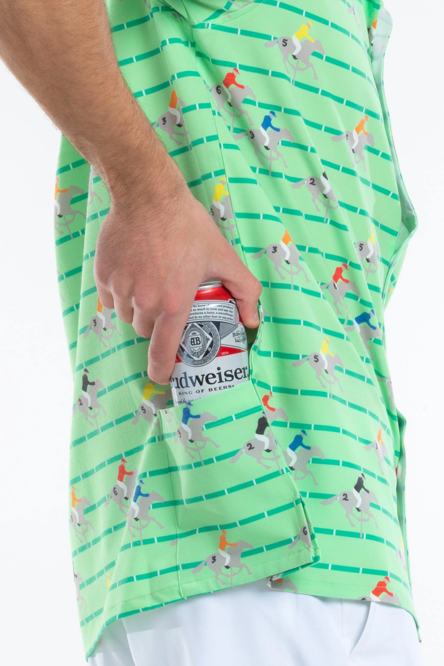 This horse racing Hawaiian has a built-in pocket that was specifically made to hold an extra mint julep while you’re busy guzzling another one. Not a drinker? Use the pocket to hold that wad of cash you just earned by picking the quickest pony. Not a gambler? Use the pocket to hold a hot dog. Vegetarian? I could go on forever.