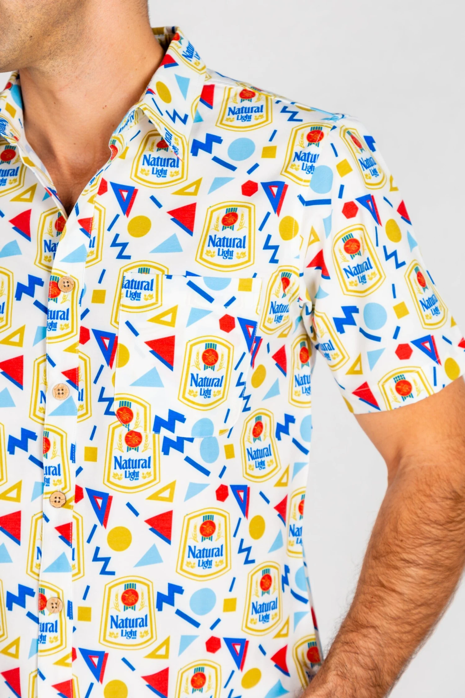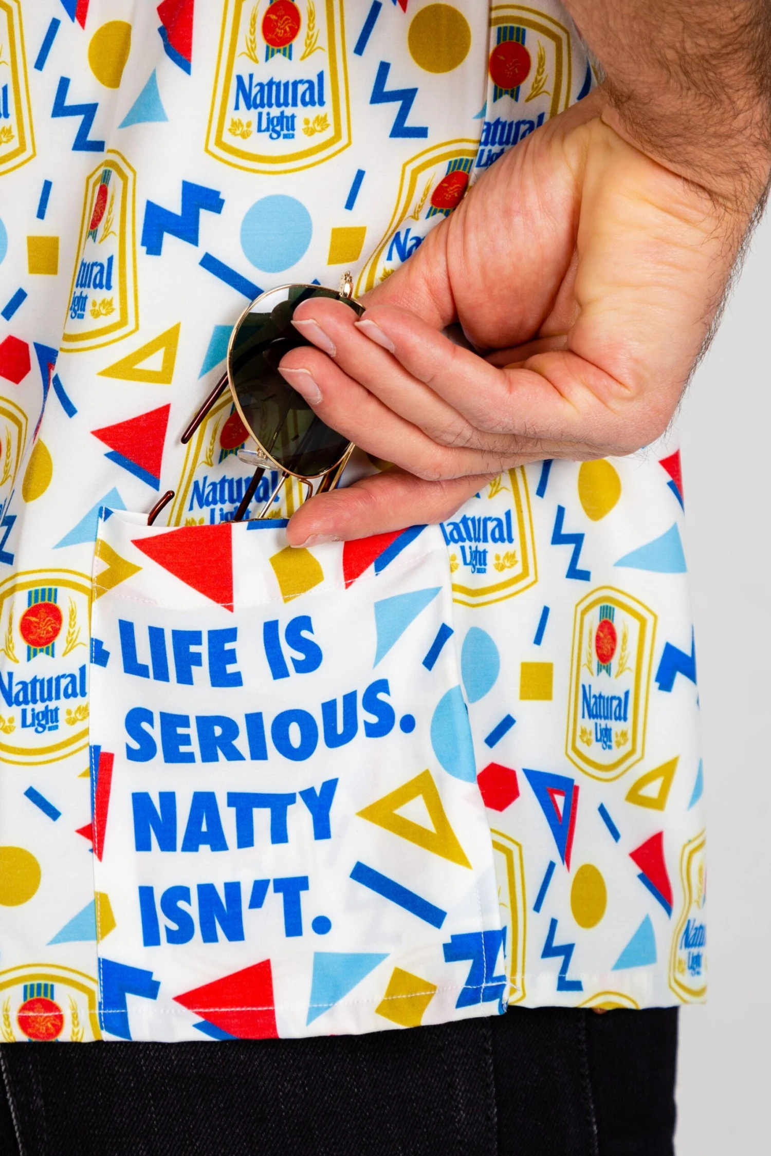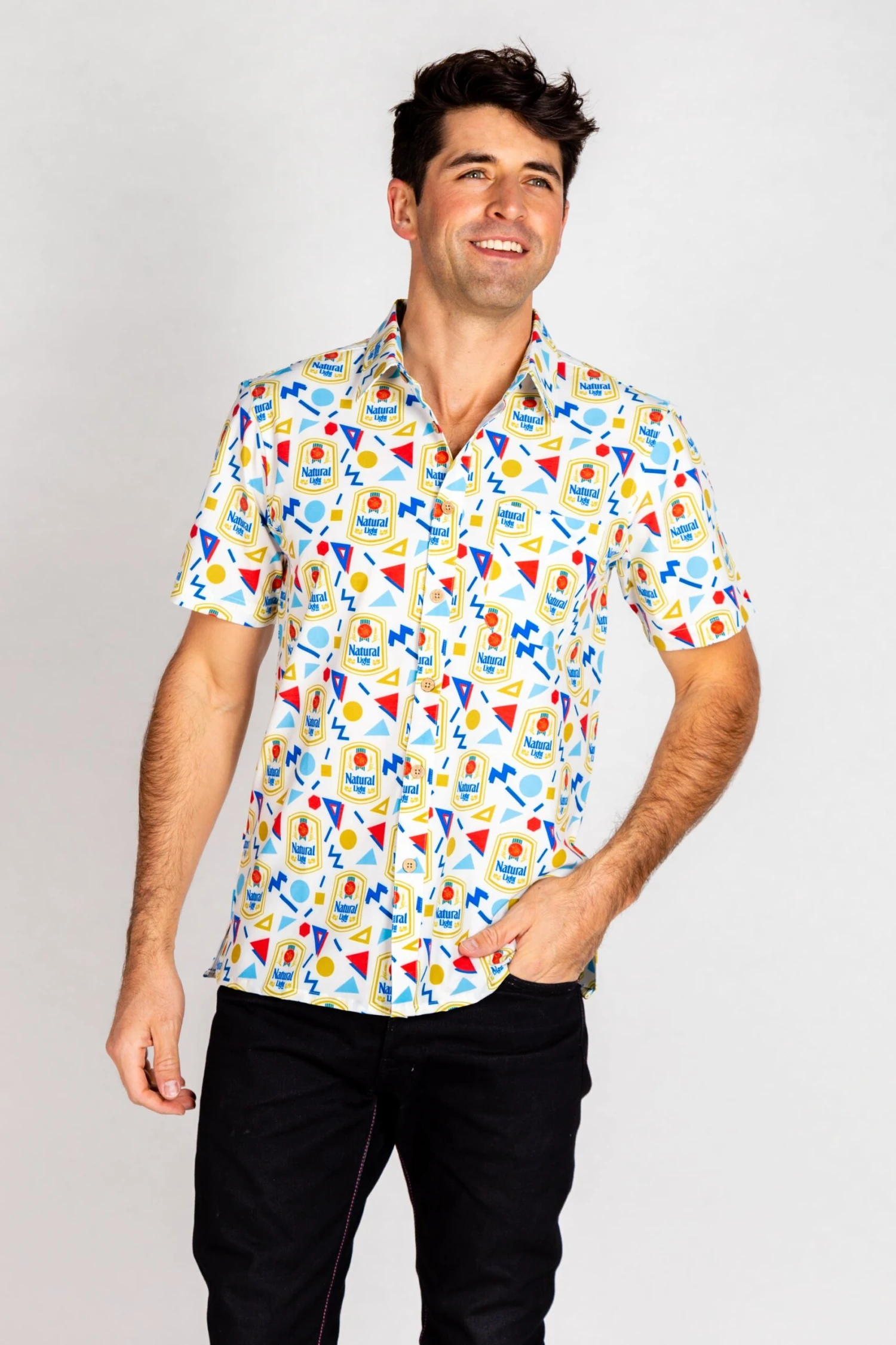 Keep things ice cold with this officially licensed Natural Light Hawaiian shirt. With a nostalgic retro pattern and a slight stretch, this Hawaiian shirt will be the hottest thrift store find in 2060.