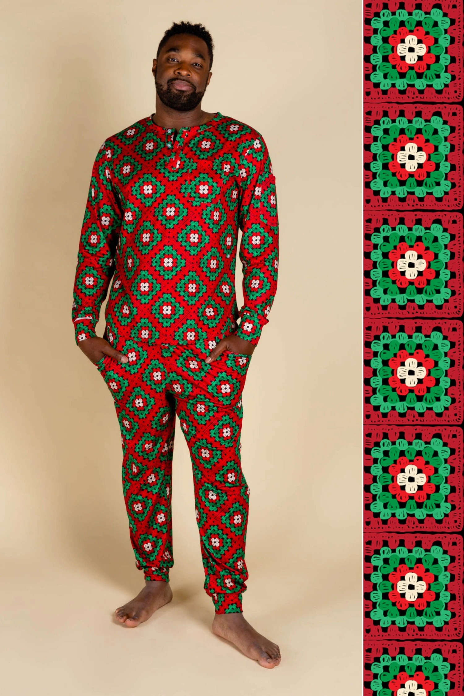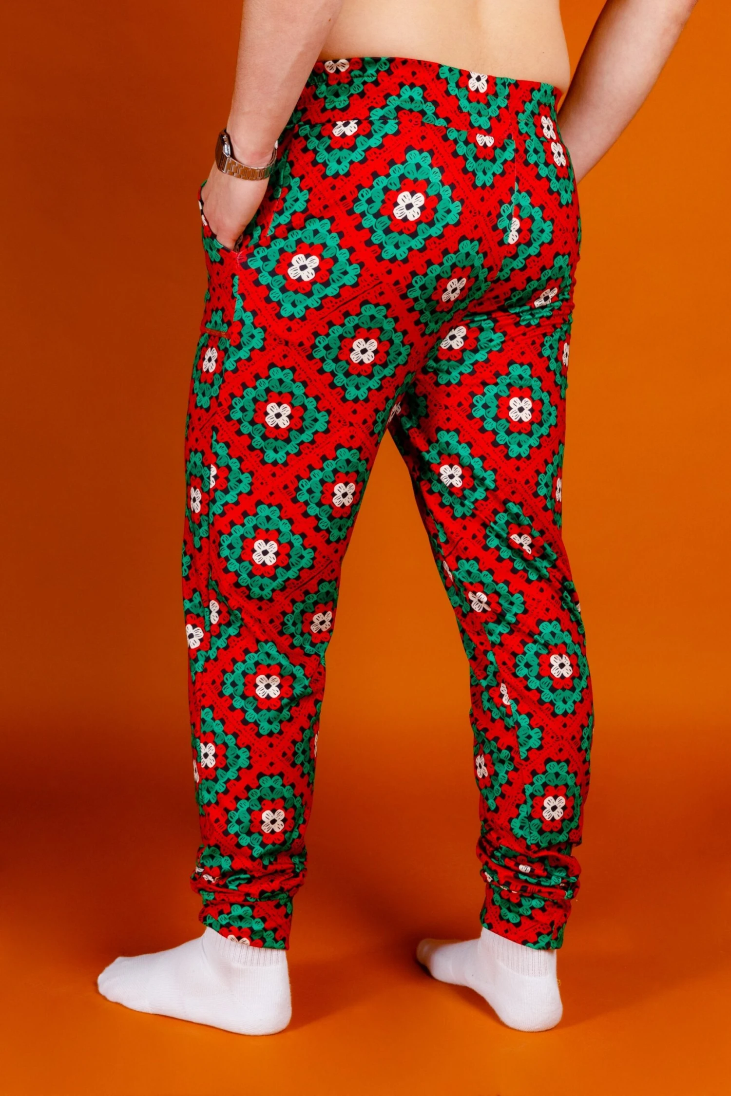 The Quilty Pleasure | Mens Red And Green Afghan Christmas Pajama Bottom