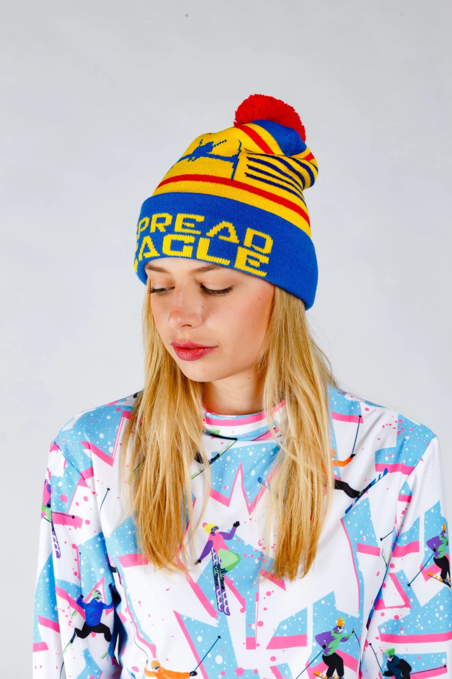 I asked our graphic designer the first thing he thought of when he saw this spread eagle ski beanie. The Answer? Sex. I continued, asking “Was it really?” He doubled down, ensuring me spread eagle does, in fact, mean sex. So there you have it, a retro ski beanie that reminds ya of sweet, sweet whoopie. What more can you ask for?